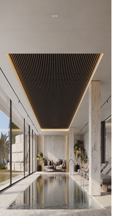 - Zona wellness: gimnasio, piscina cubierta climatizada, sauna y hammam.